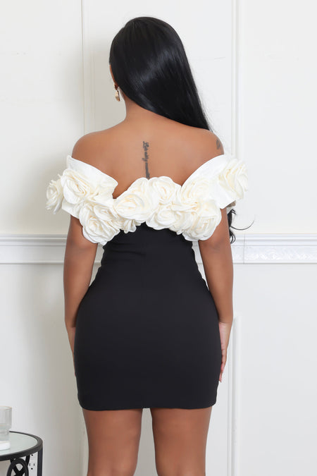 CHIC BABE TUBE ROSE DETAILING DRESS (BLACK/WHITE)