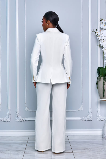 SOLID LINEN DOUBLE BREASTED BLAZER & PANTS (WHITE)